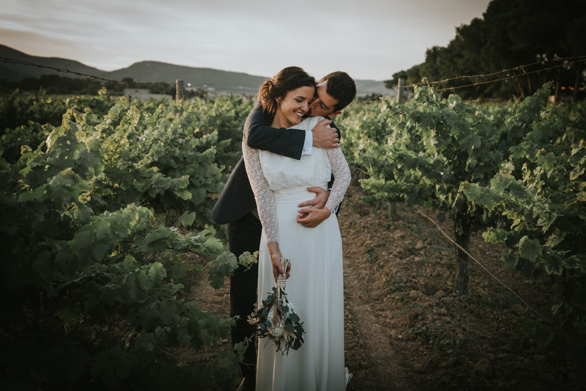 Además, los viñedos de Masia Joan Sarda de Cal Blay ofrecieron un paisaje espectacular para nuestras sesiones fotográficas. La combinación de la belleza natural de los viñedos y la energía radiante de la pareja creó imágenes cautivadoras. Cada fotografía capturaba la magia del momento y la conexión entre los novios y su entorno.